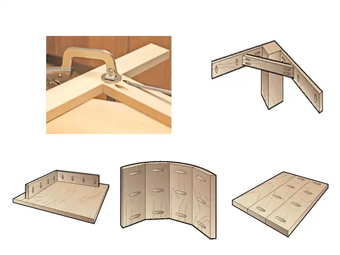 The simplest joint is the butt joint where two boards and butted together and held with glue, nails or screws. |