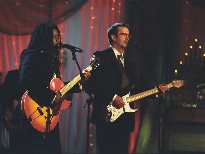 In the1970s Eric Clapton was browsing a Nashville guitar store called Sho-Bud, when he came across three used 1950s Stratocasters in the back of the store and bought all three of them. "They were so out of fashion you could pick up a perfectly genuine Strat for two or three hundred dollars even less! So I bought all of them. I gave one to Steve Winwood, one to George Harrison, and one to Pete Townshend." Eric Clapton said. |